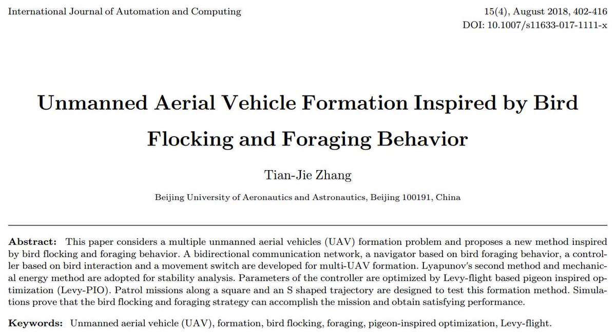 This paper considers a multiple unmanned aerial vehicles (UAV) formation problem and proposes a new method inspired by bird flocking and foraging behavior.